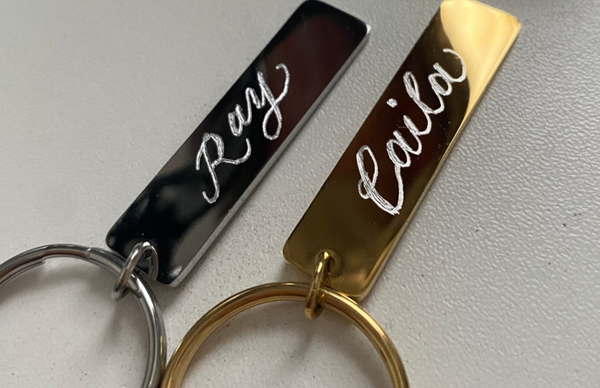Hand engraved keyrings - personalise yours with a name, date or initials. English or Arabic. (Keyrings are stainless steel)
